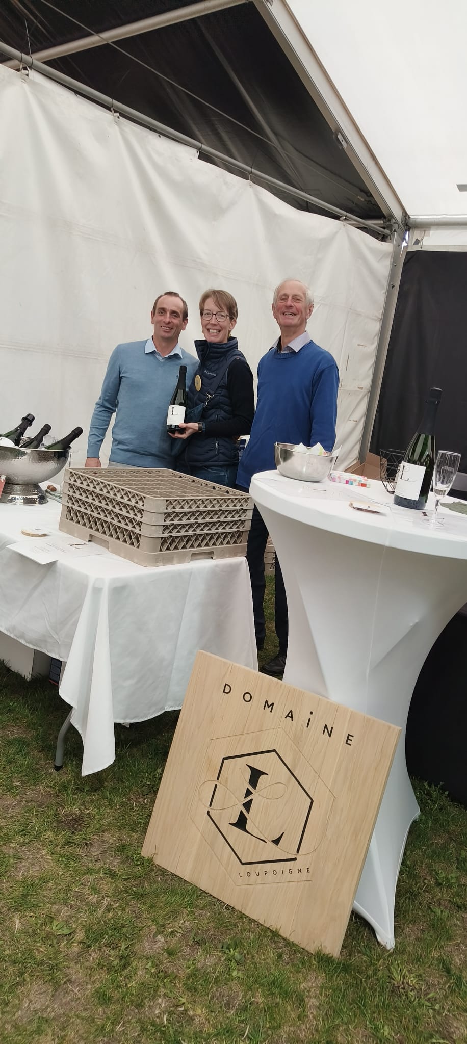 Interrogée sur le choix du nom du domaine, Aline répond que le « L » a une double symbolique et fait référence, concrètement, au toponyme (Loupoigne) et, phonétiquement, au genre de l’exploitante (Elle), car elle voulait insister sur le fait que ce rêve est aussi accessible aux femmes. La symbolique du nom du domaine est également matérialisée par un double L décliné en noir et or dans le logo. Quant à l’étiquette, elle porte, outre le logo et les principales caractéristiques du produit, la configuration du village de Loupoigne reproduite en relief et, à un endroit bien déterminé de la carte, un point doré représentant le positionnement géographique du vignoble.