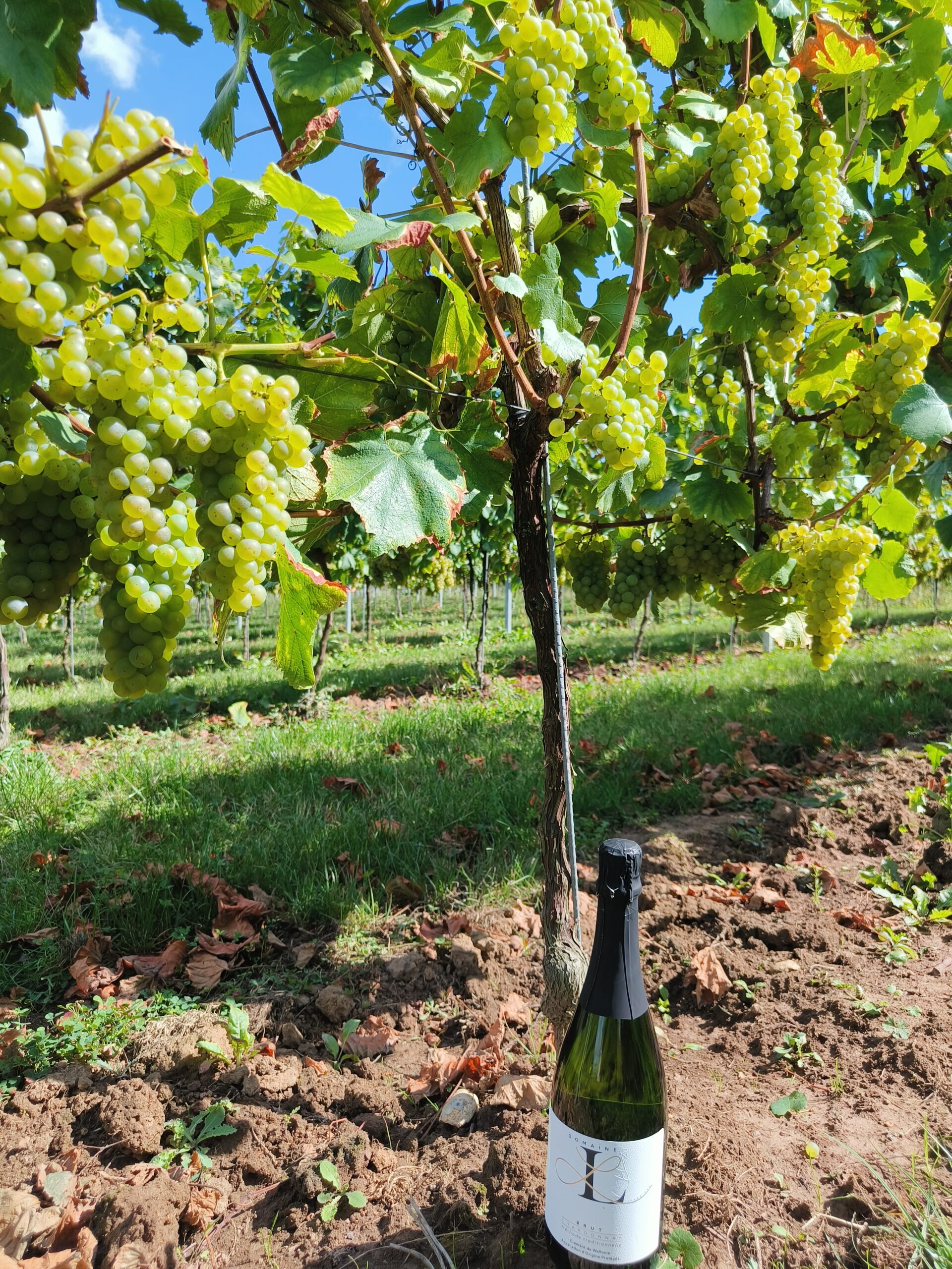 Aline est fière aujourd’hui de présenter le premier produit de son dur labeur : le Domaine L, un Crémant de Wallonie ayant obtenu une Appellation d’Origine Protégée il y a peu. Aline n’ayant pas les installations requises, la vinification se déroule au Domaine du Ry d’Argent.